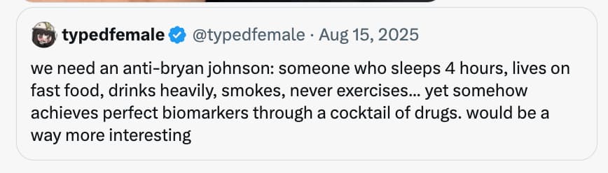 Yes, it’s a bit of a trap for Bryan Johnson, he has to keep pushing the envelope to newer and less validated interventions to keep getting attention… which drives the Blueprint business. He’s done most of the low hanging fruit…