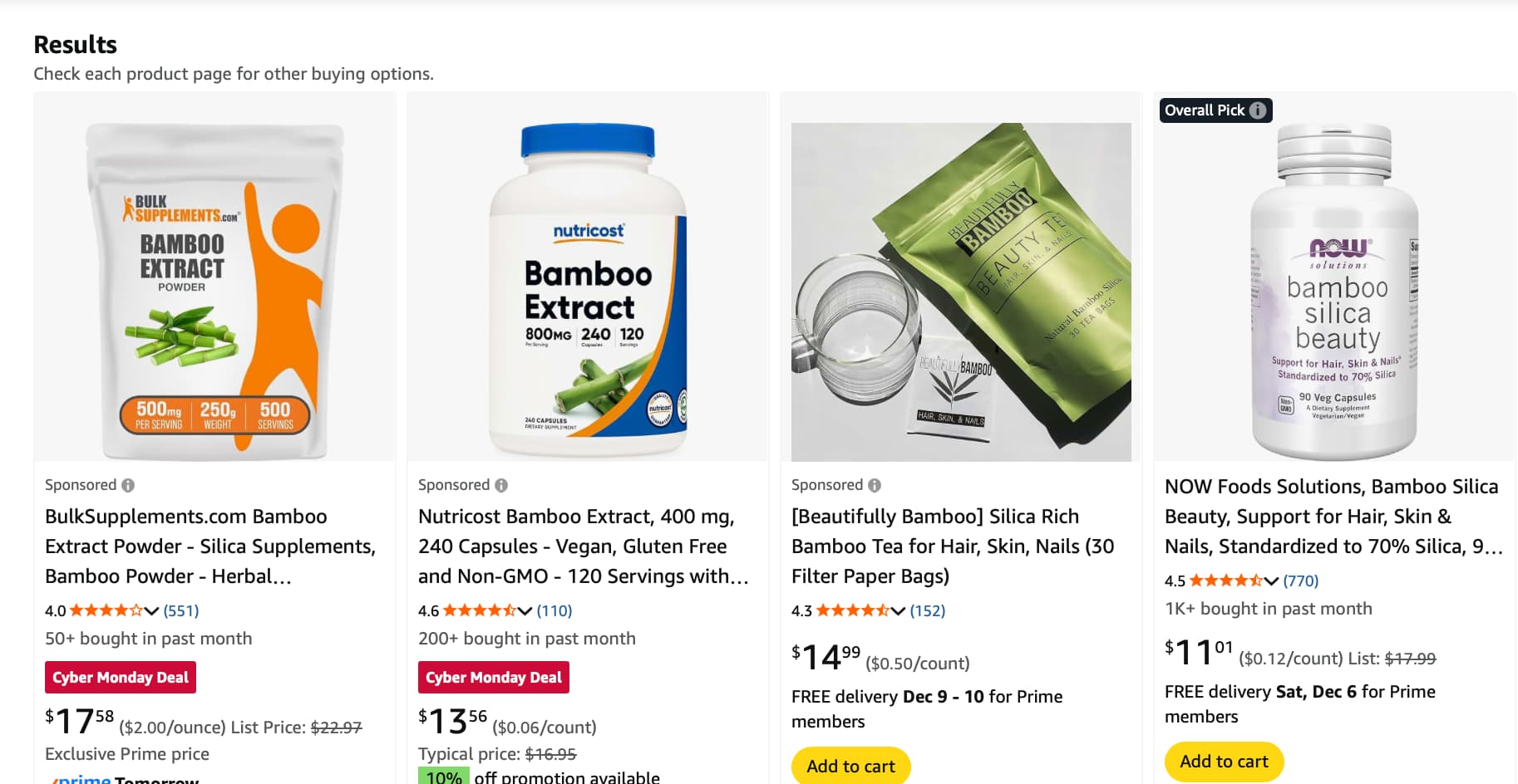 and there are lots of bamboo shoot silica extract products out there (who knew?)