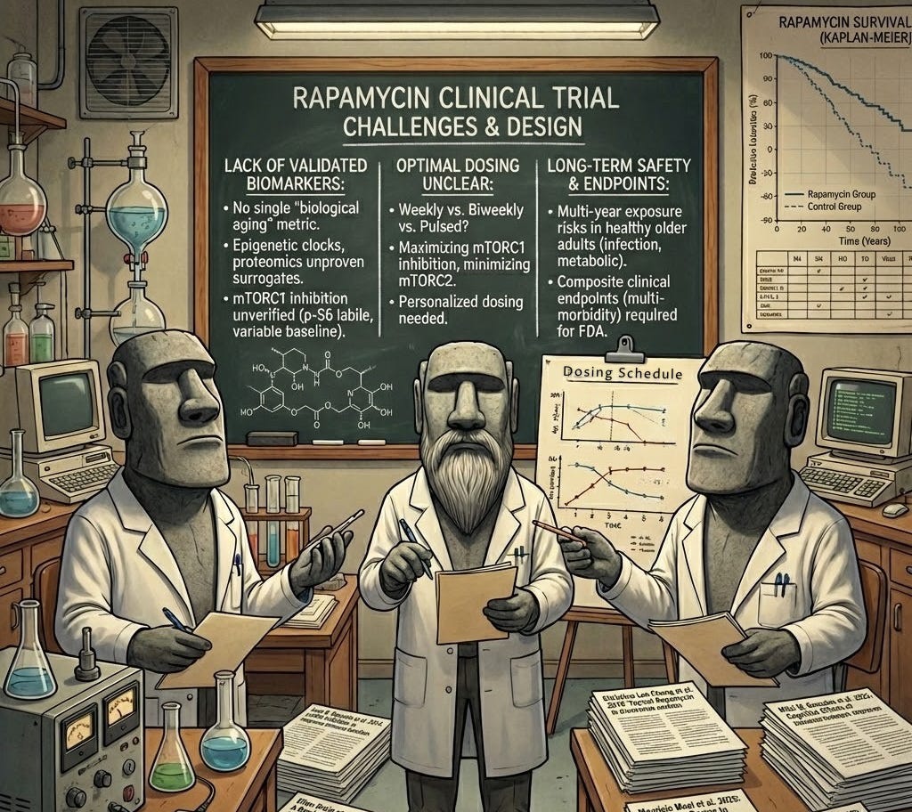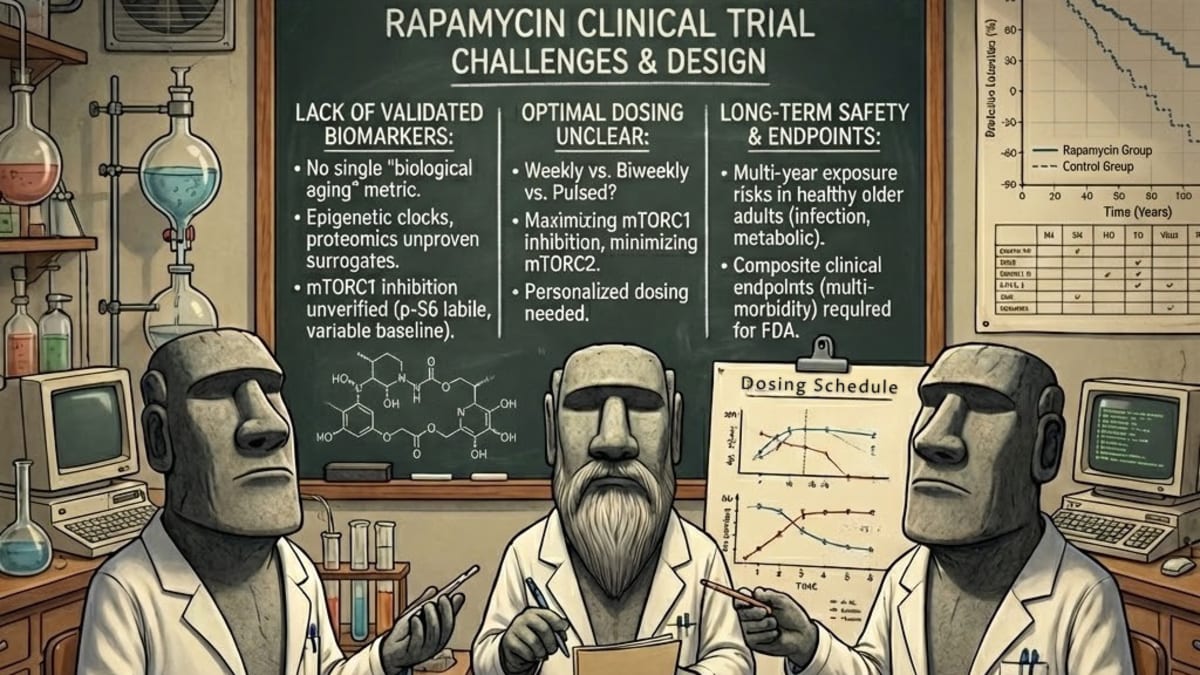 Early human trials of mTOR inhibitors hint at improved immune function, cardiovascular markers, and skin health with little side effects [3]. However, they also expose critical gaps: how to measure “aging” in trials, how to balance efficacy with safety in otherwise healthy people, and how to design studies that regulators and industry can get behind.