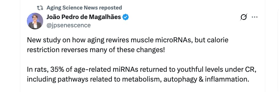 Full paper (open access): miRNA changes with ageing and caloric restriction in male rat skeletal muscle: potential roles in muscle cell function