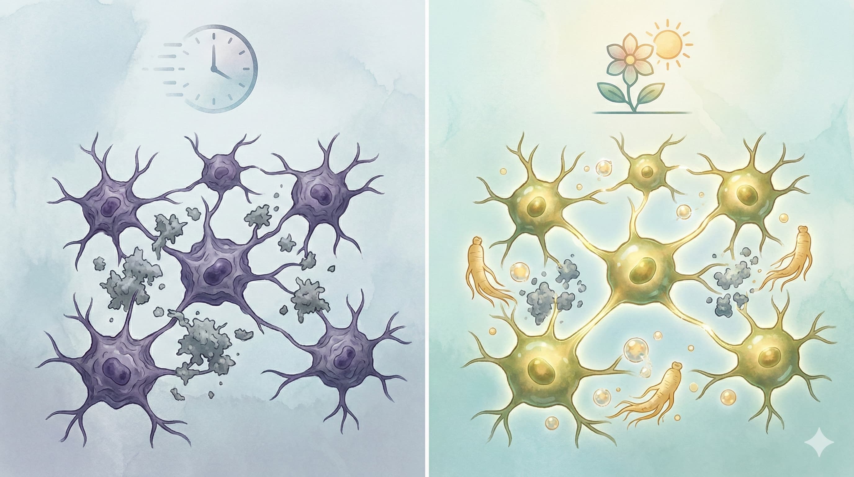 In a compelling new study from the Duke & University of North Carolina Alzheimer’s Disease Research Center (USA), published in the journal Alzheimer’s & Dementia, researchers have identified a specific mechanism by which Panax quinquefolius (American Ginseng) may reverse age-related cognitive decline. The “Big Idea” here isn’t just that ginseng is good for you; it’s how it works. The study reveals that a specific extract, dubbed PanQ, acts as a molecular janitor. It upregulates Cathepsin B (CatB), a lysosomal protease critical for the autophagy-lysosomal pathway (ALP).