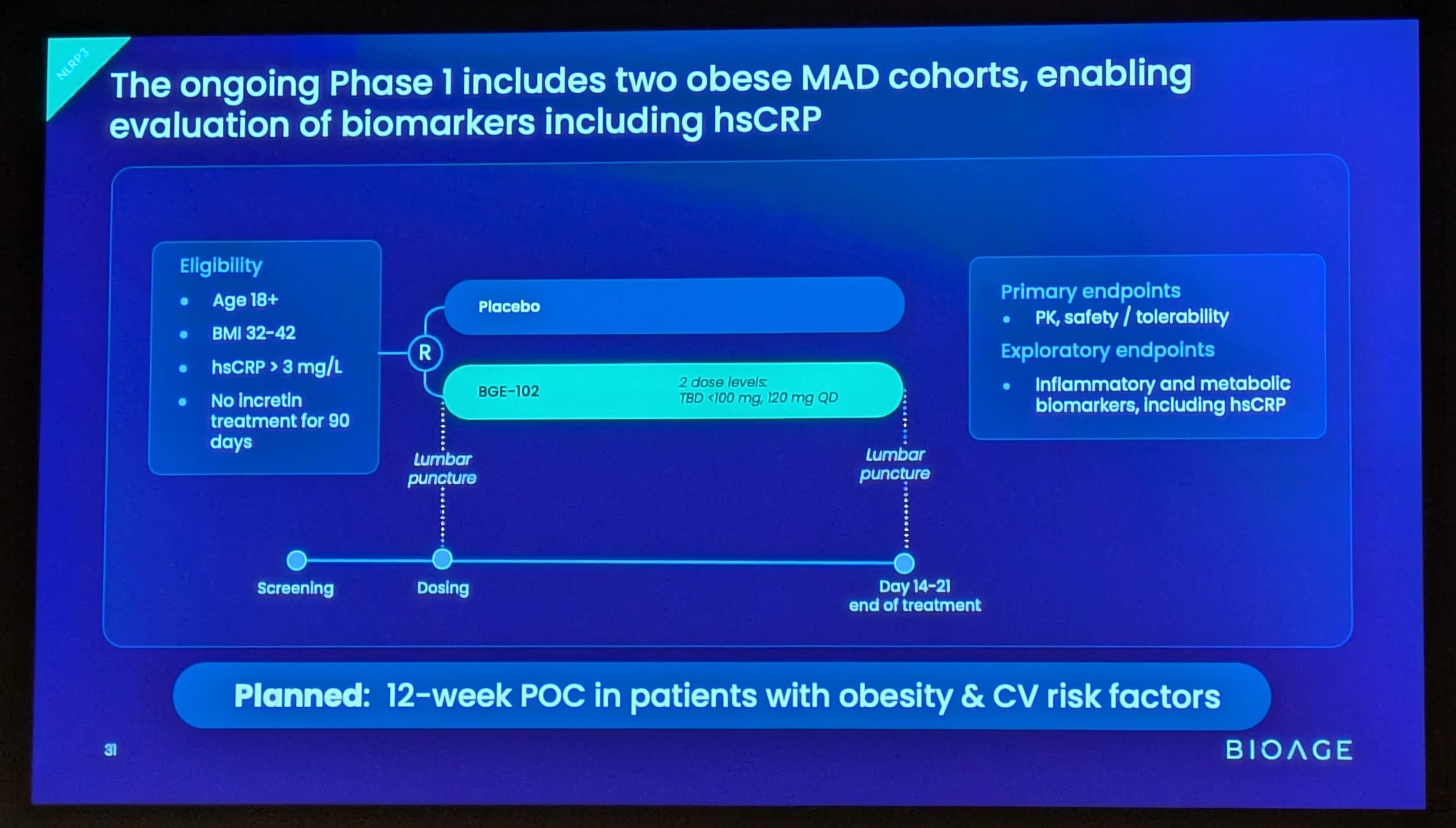 There are a number of companies working on clinical trials for NLRP3 inhibitors (and these are expected to be important longevity drugs in the future if they pass phase 3 clinical trials). Another company working in this area is discussed here: The Immuno-Neuro Dialogue: A 5-Point Playbook for Rewiring the Aging Brain - #3 by RapAdmin