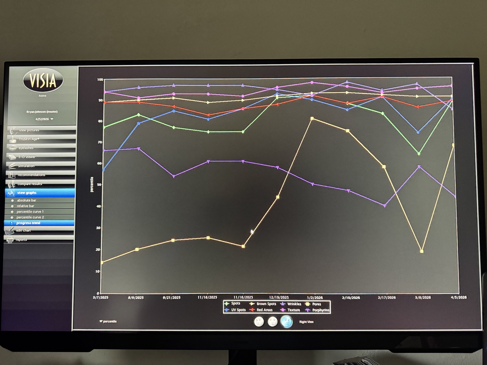 Hyperbaric Oxygen Therapy (HBOT): is perhaps the best skin rejuvenation therapy in the world. Data from 60 sessions, 90 minutes each. 20 min oxygen, 5 min off. 5x weekly, 12 weeks.