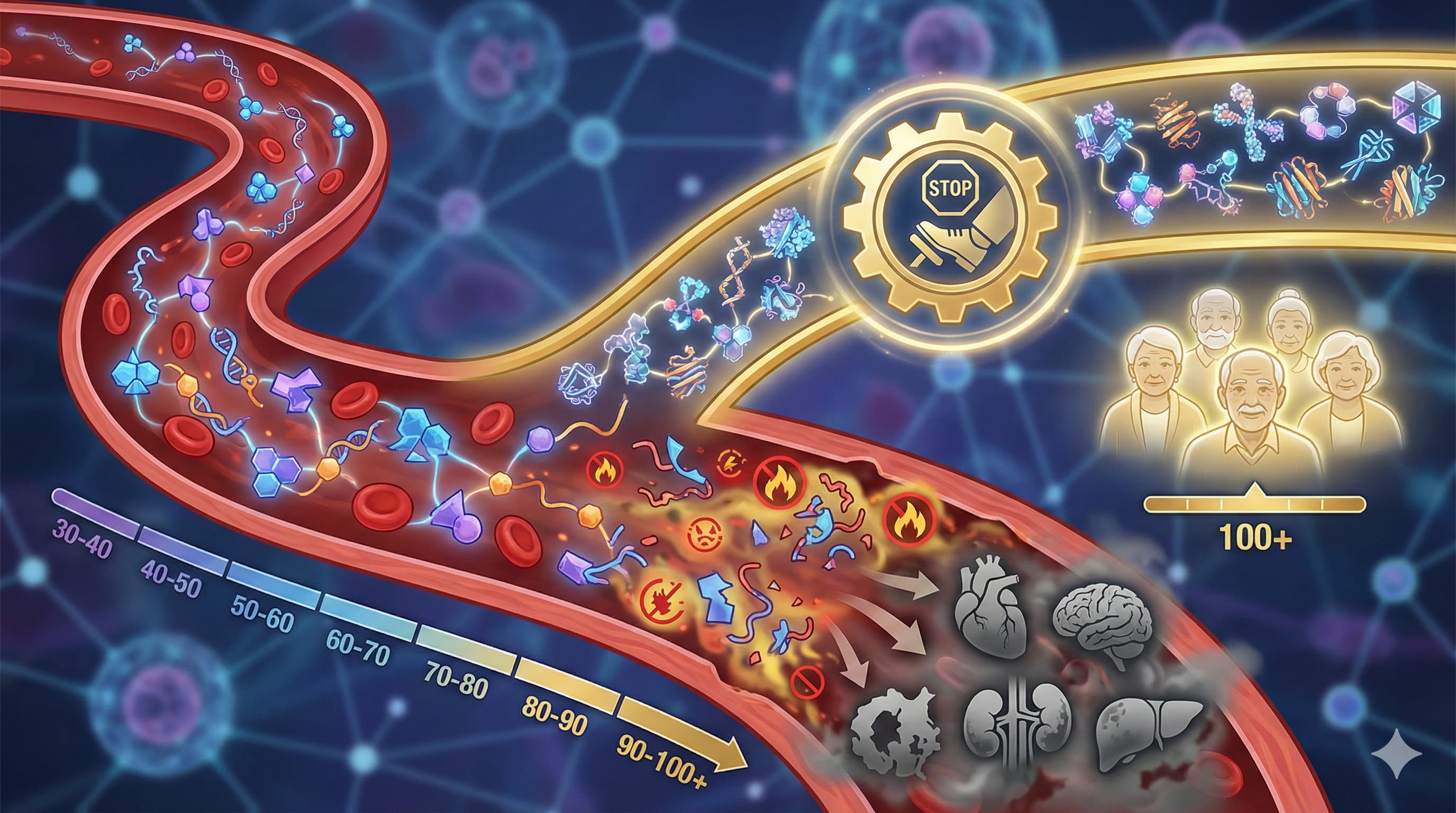 Answer: Strict Glucose/Insulin Control. The dominance of the insulin/IGF-1/ECM cluster (DPP4, GLO1, insulin-like proteins) screams that metabolic preservation is the gatekeeper to age 100. If you can’t get Sitagliptin, get your fasting insulin < 5 uIU/mL.