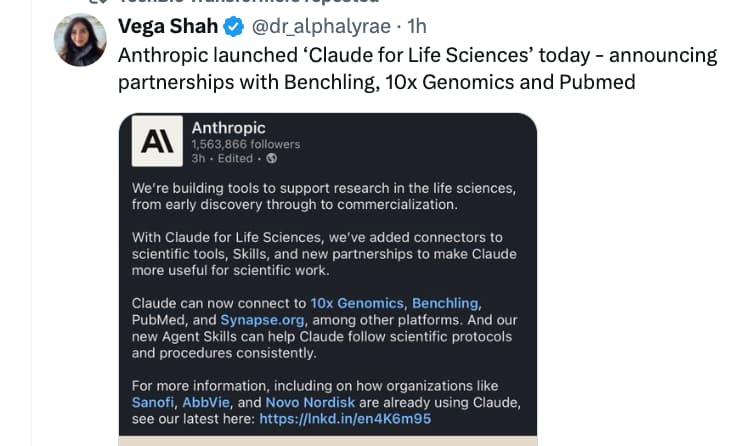 The San Francisco-based group said on Monday it is integrating Claude into tools that scientists already use, including lab management systems, genomic analysis platforms and biomedical databases, to tackle time-consuming tasks such as data analysis and literature review.