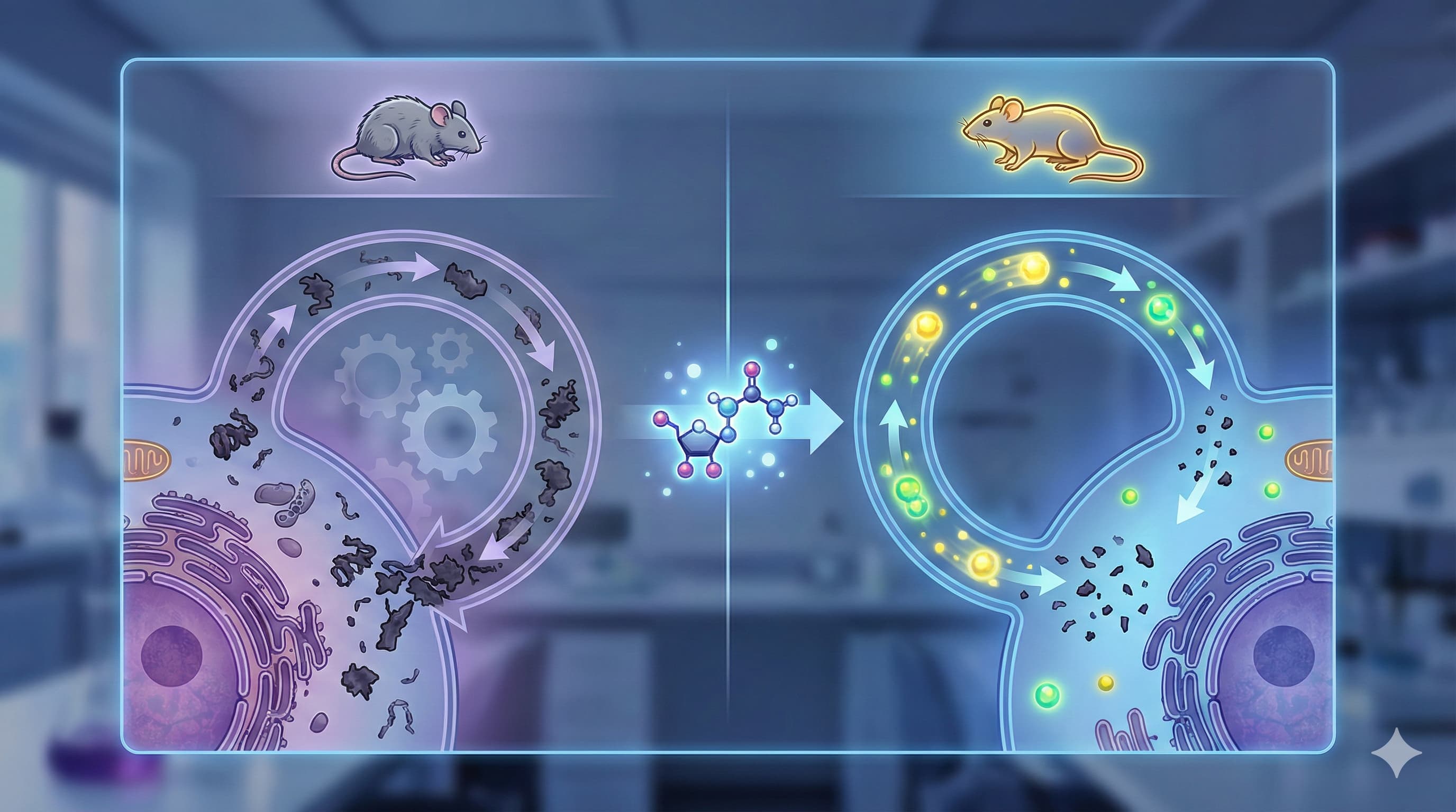 However, age spares no one: both neurons and astrocytes suffer a significant decline (~30%) in this critical cleaning process as mice age. The study identifies a potential rescue: supplementing old mice with Nicotinamide Riboside (NR), a precursor to NAD+, restored mitophagy levels in both cell types. The findings suggest that brain aging might be driven as much by “lazy janitors” (astrocytes) as it is by failing neurons, and that high-dose NAD+ restoration can kickstart the cleaning crew back into action.
