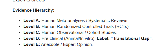 - Evidence Level: Level A/B (Human Meta-analyses / Human RCTs).