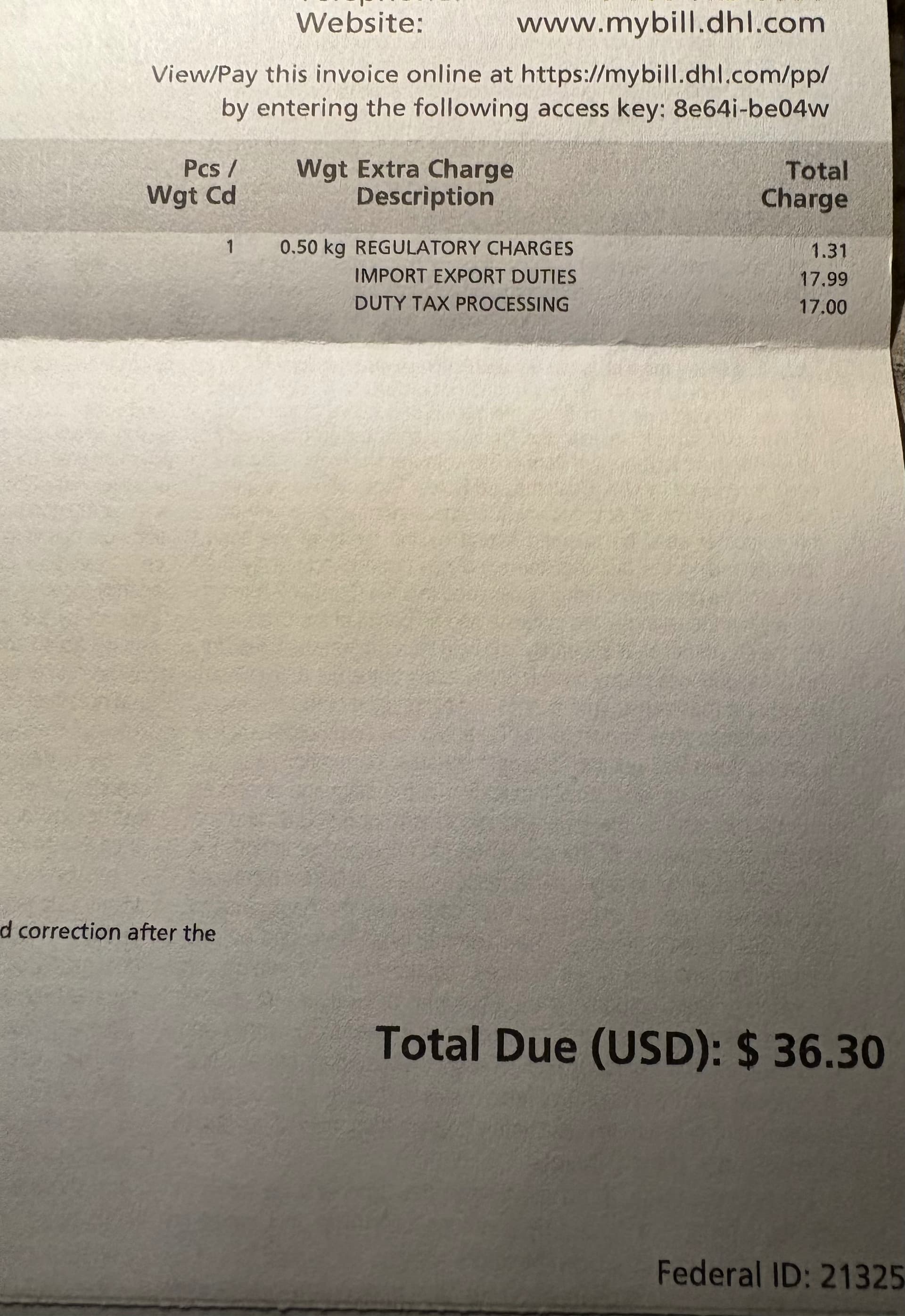 I just received a DHL customs duty invoice of $36.30 for a skin care product I ordered from France recently. I didnāt think I was going to have to pay anything until I opened my mailbox today. My purchase came to approximately $150 USD.