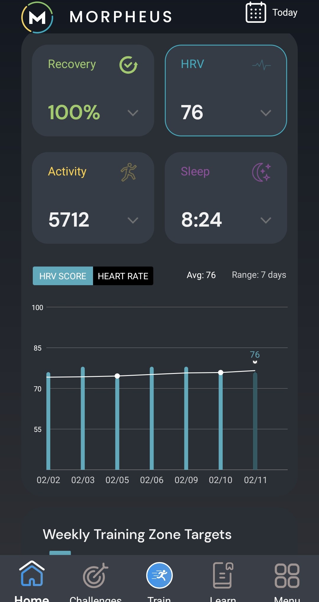 I dosed my rapa Monday evening and then I generally do a dry fast (only drink water) for 36 hrs. Here is the RHR for Monday and Tuesday night plus HTV trends.