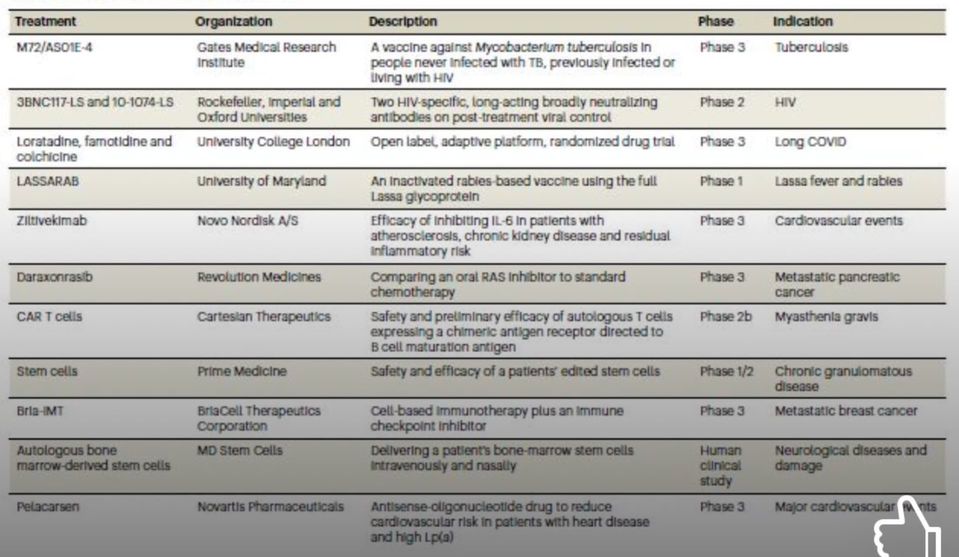 Great list, thanks for sharing . Very interested in long acting antivirals (second row, as may have off label benefits e.g. Maraviroc). Also interested in the outcome of IL-6 inhibition, as interested in anti inflammatory generally (e.g chronic inflammation in MS) and inflamaging too…