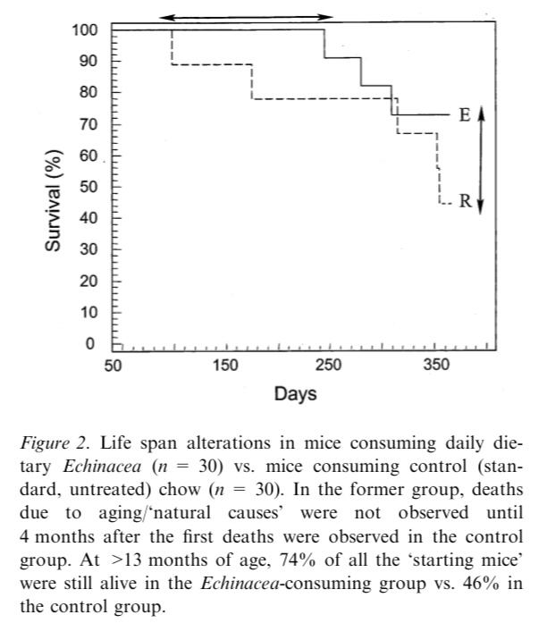 Coming back to Equinacea supplementation, there seems to be a persistent improvement in the NK cells throughout the lifespan of the mice, no problems there if you are a mice. For us that we live so long, are we depleting our capacity in some manner? if we stop the treatment we go back to baseline?