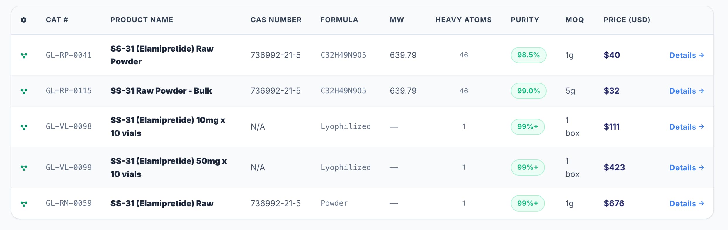 - SS-31 is being trialed for acute or severe dysfunction, such as heart failure, primary mitochondrial diseases, or severe kidney injury. It is a “rescue” molecule intended to fix a system that is already failing.
