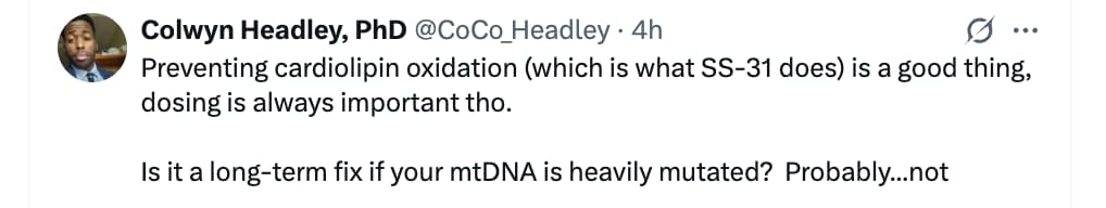 Given Colwyn’s response, I guess you don’t want to wait until you’re too old to start fixing your mitochondria with SS-31…