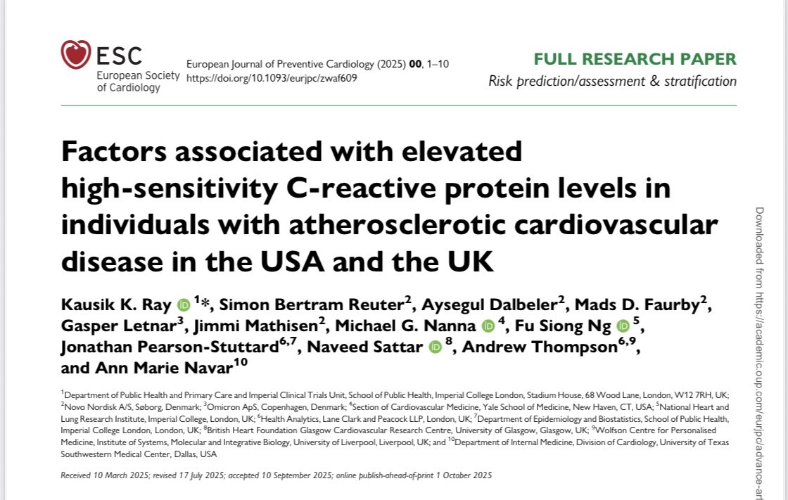 Inflammation (hs-CRP) is one such non-SMuRF, perhaps one of the strongest. This is especially true for people already on statins or those without traditional risk factors (sometimes called “SMuRF-less” patients). In these groups, cholesterol may be well controlled, but inflammation remains a key driver of events.