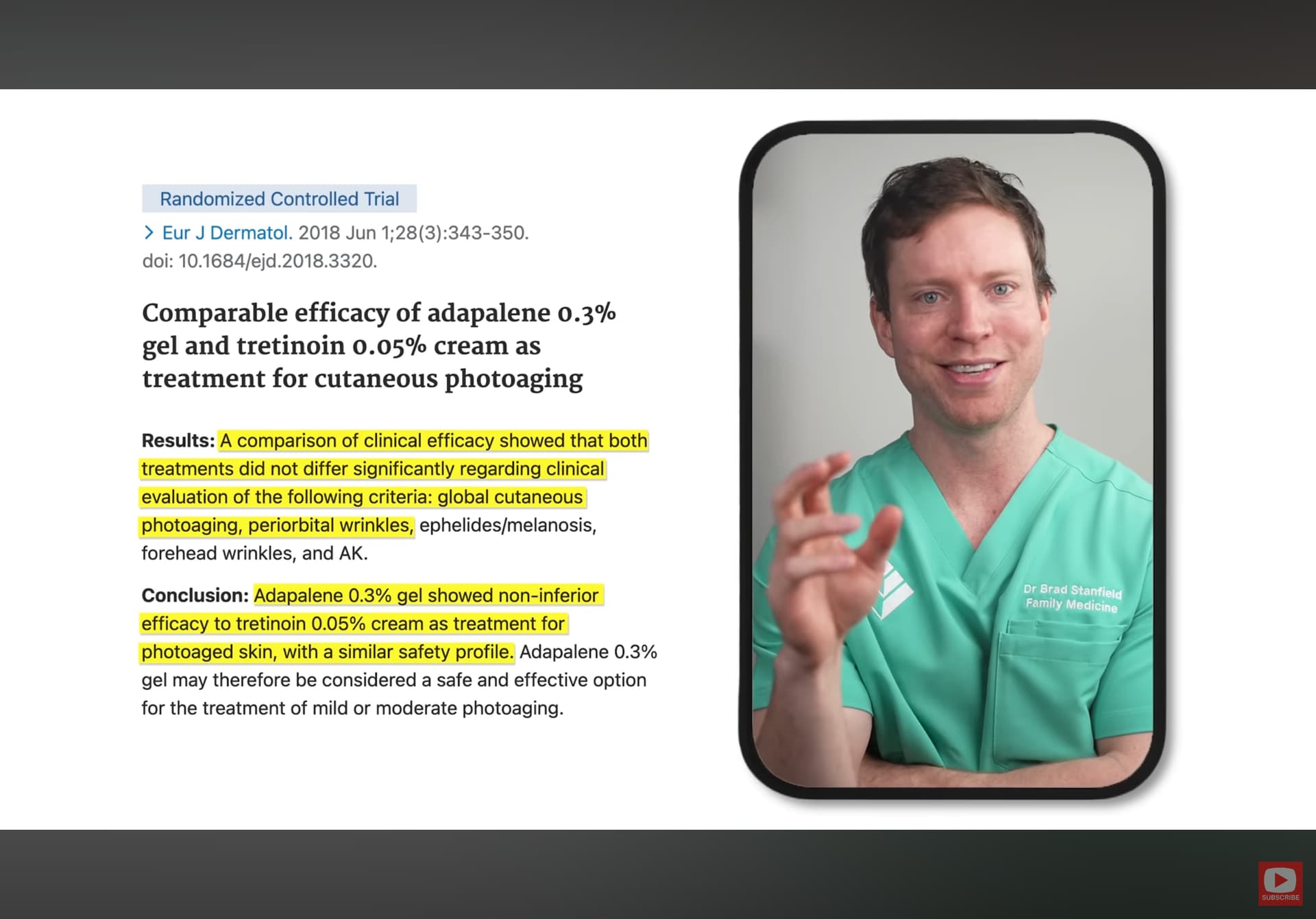 He said adapalene, which can be less irritating than tretinoin, was shown to be as effective (this was not what I was told, so this was useful)