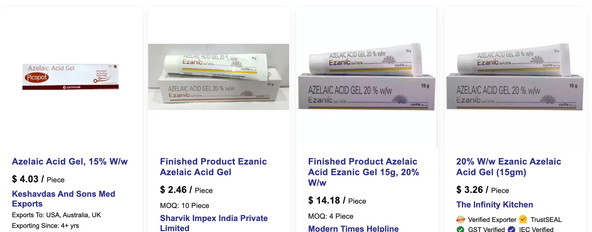 - For acne, rosacea, or hyperpigmentation, prefer 15–20% azelaic acid formulations over cosmetic 10%.