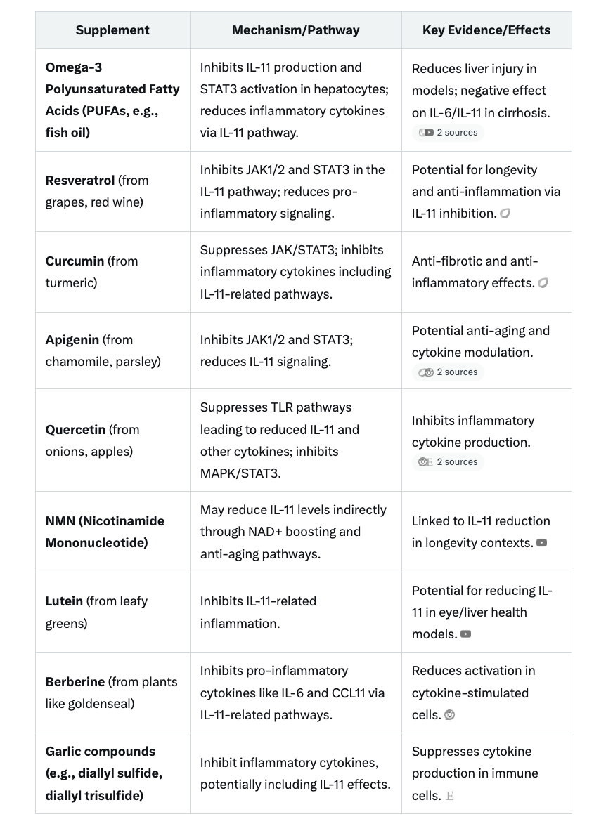 https://www.reddit.com/r/NootropicsDepot/comments/1e7i83x/il11_inhibitor_supplements_for_longevity/