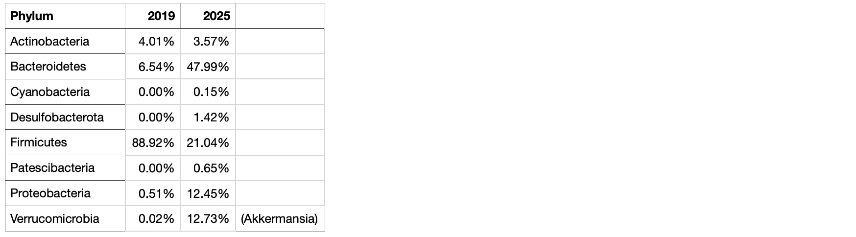 - My 1st microbiome sequencing identifying the Firmicutes dysbiosis this took 6 weeks to get back.