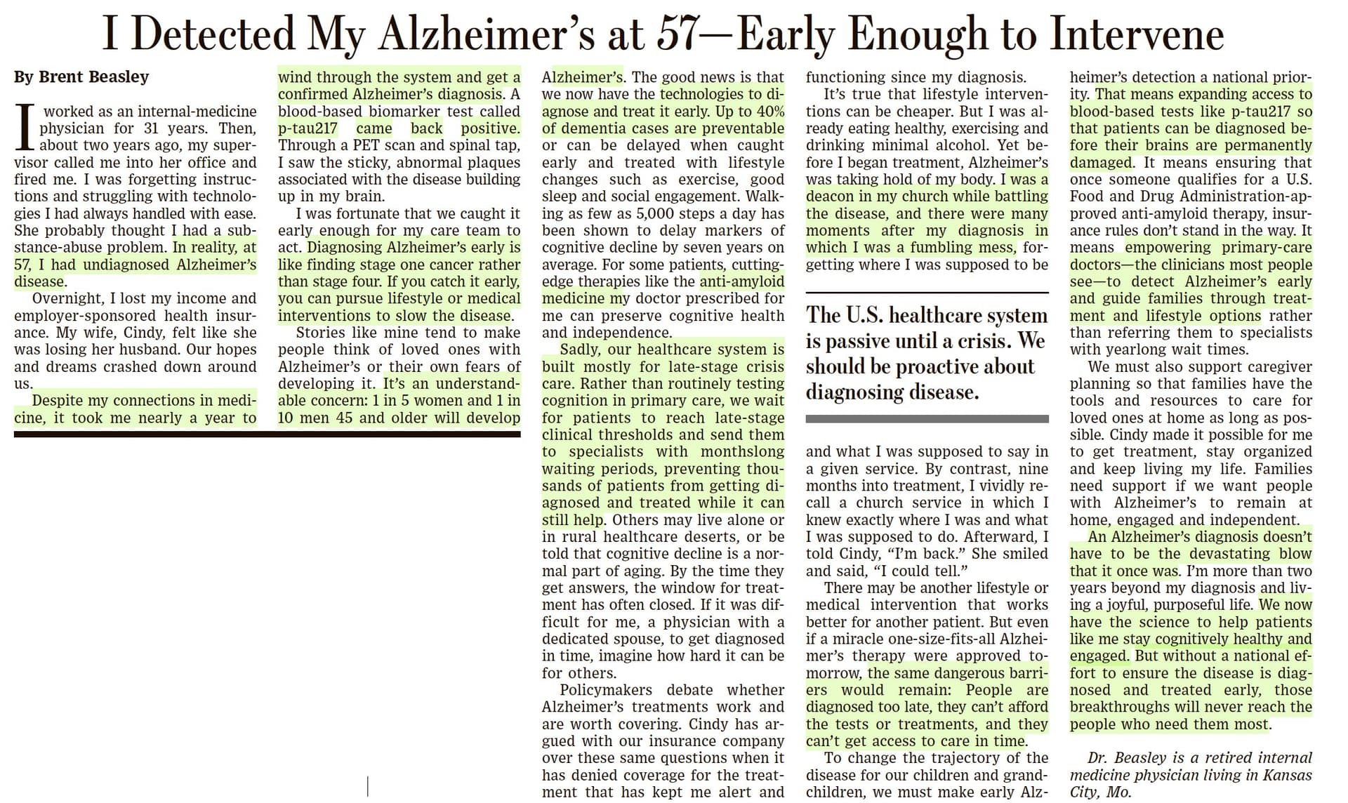 On @Steve_Combi 's article, yes, I have patients positive for Beta Amyloid 42:40 ratio and p-Tau 217 with no symptoms or very vague MCI. It is something to track to see if interventions are working and improving these test results, or slowing predicted worsening in these values over time. This is where the DORA agents are interesting as they have been linked with decrease in the isoforms of Beta Amyloid - but not necessarily the ratio we track.