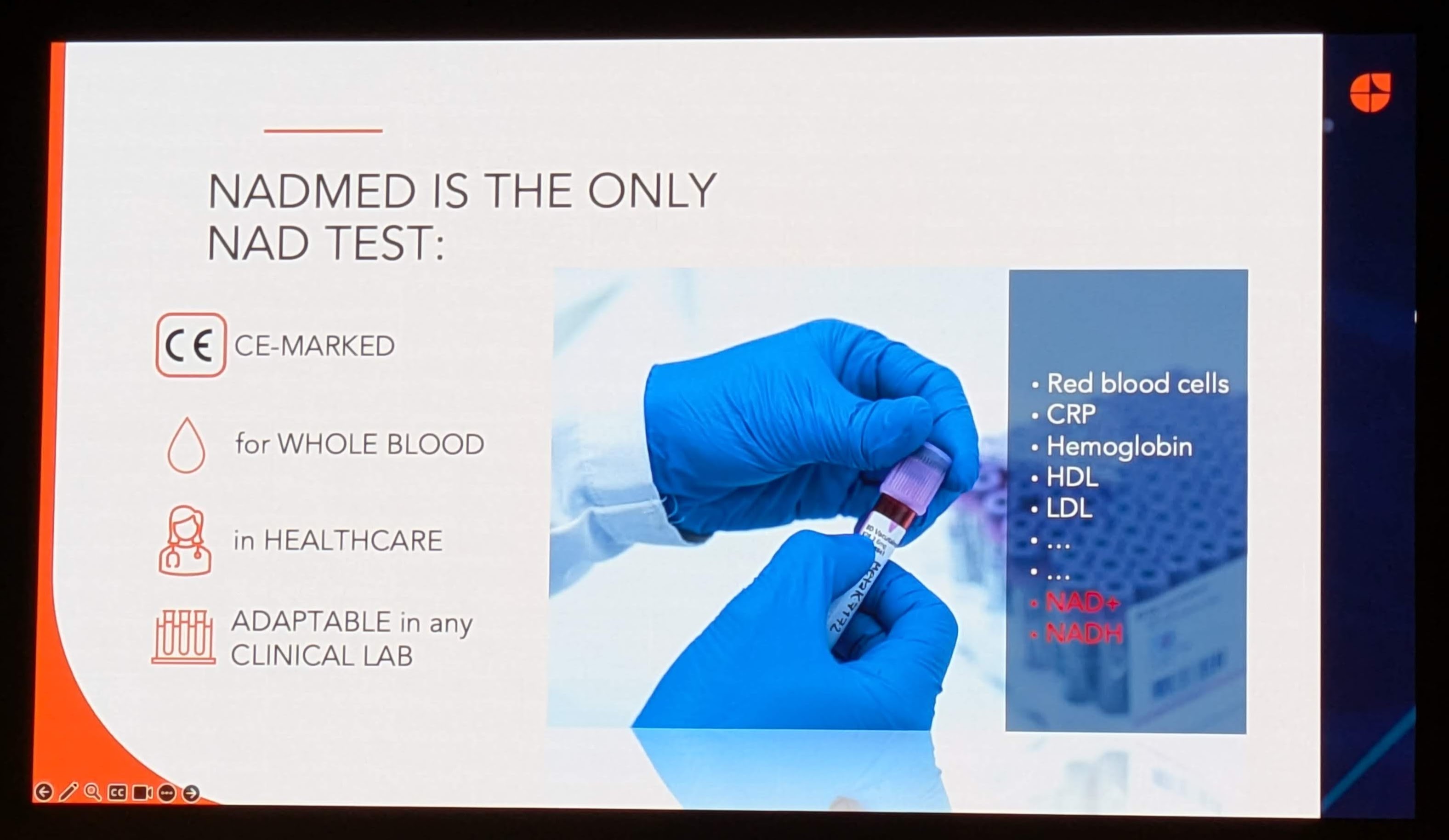The presentation claims NADMED is the “only” NAD test that is CE-marked for whole blood in healthcare.