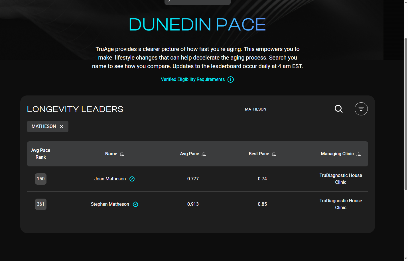 It’s also important to understand that more and more people are doing these tests and some of those people who were not previously participating have good results and bumping others down. A new person who is not on there but has 3 tests could register and be # 1, moving all those below down 1 rank. That’s what Joan and I did. Our 4 tests go back 3 years so we both displaced people already in the rankings.