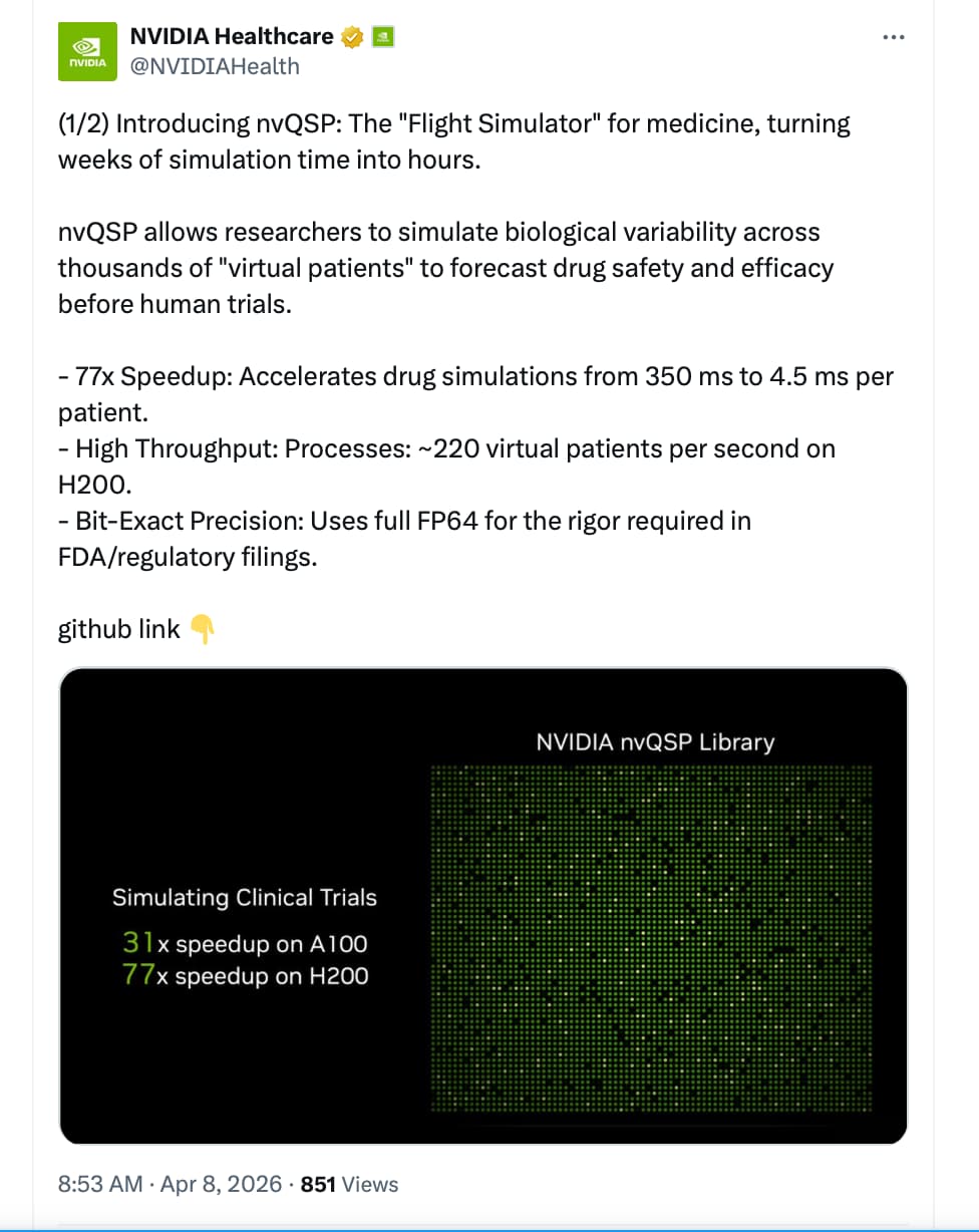 https://x.com/NVIDIAHealth/status/2041907188508303447