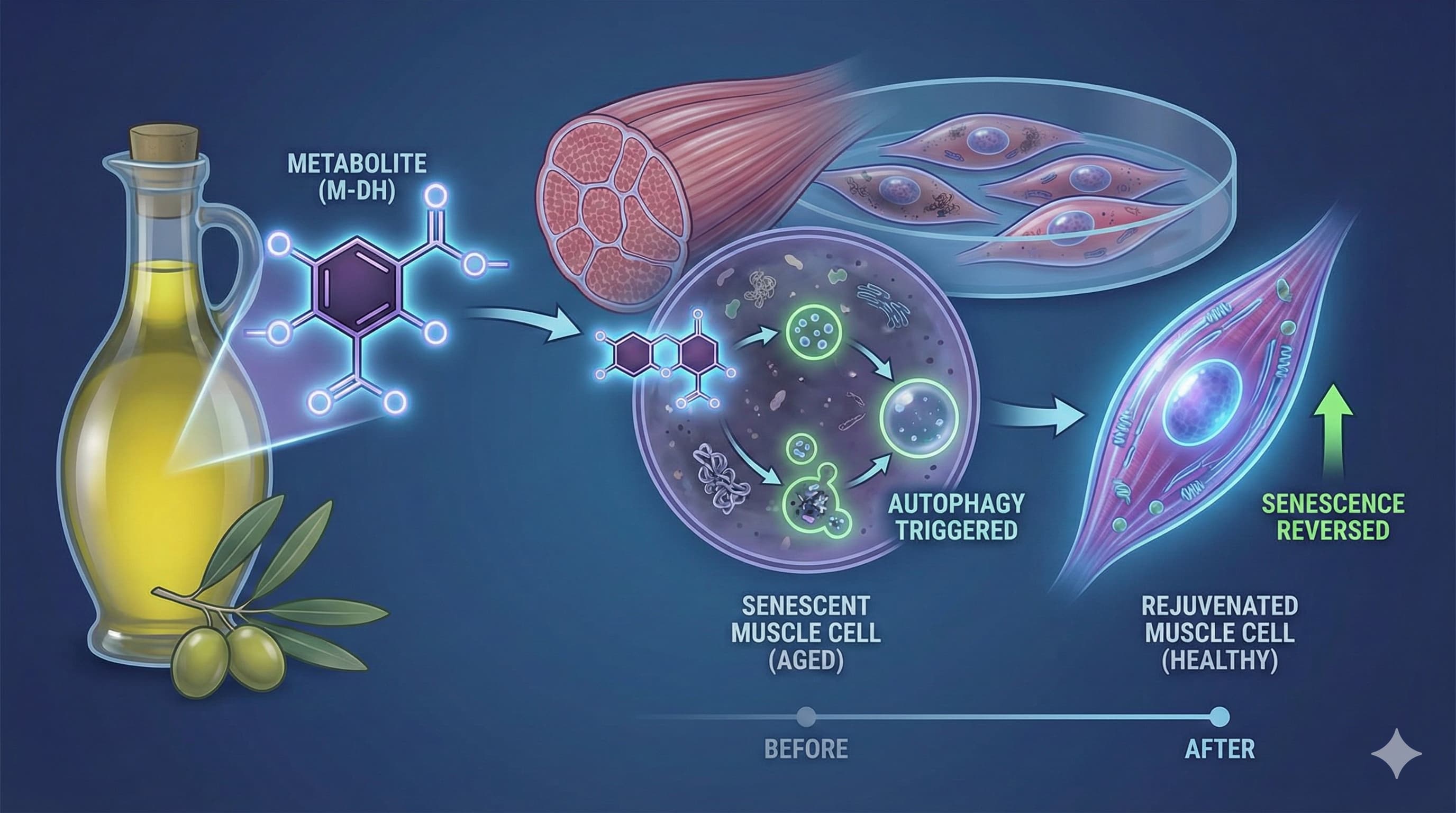 We knew olive oil was “good” for you. We didn’t know exactly how it preserved muscle tissue under stress. This paper links the polyphenol OLE directly to the Sestrin-AMPK feedback loop in human muscle cells, providing a specific genetic target (SESN2/3) that explains the preservation of muscle function observed in Mediterranean populations.