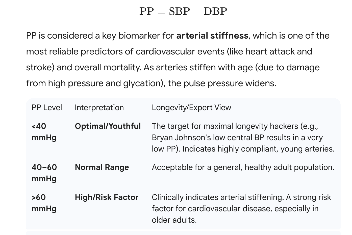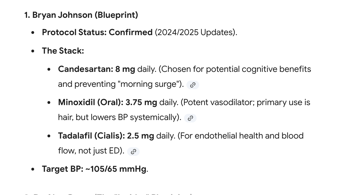 • Bryan Johnson (Blueprint protocol): Personally achieves exceptionally low BP (brachial ~114/76 mmHg previously reported; recent biomarkers place it lower than 90% of 18-year-olds), using therapeutics like candesartan for cardiovascular protection equivalent to a much younger age.