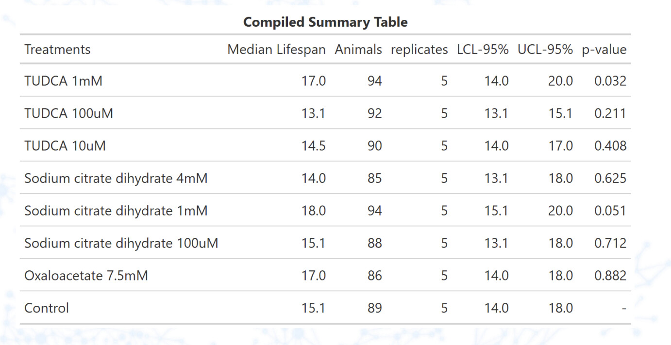 The good news with this update: high-dose TUDCA and high-dose sodium citrate dihydrate look OK. Not as good as UDCA though: Ora Biomedical Million Molecule Challenge Results - #452 by adssx (Poke @John_Hemming @Davin8r )