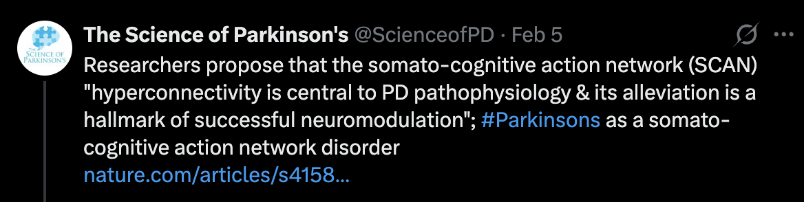 Yesterday’s paper in Nature from Profs Jianxun Ren, Nico Dosenbach, Hesheng Liu and colleagues, identifies the Somato-Cognitive Action Network (SCAN) as an intriguing structural “map” for what some have long suspected: Parkinson’s is not just a motor disorder; it is a systemic failure of communication.