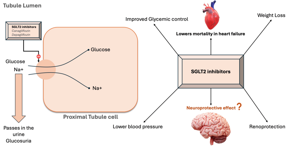 Unfortunately, this promising signal is met with silence from the highest level of evidence available to us, namely, evidence from meta-analyses of randomized controlled trials (RCTs), which, although methodologically rigorous, find no such association. We attempted to argue that this result is not a contradiction but rather a reflection of a scientific puzzle shaped by the limitations of current research. Observational studies offer the necessary long-term view but are susceptible to bias, while existing trials were too short and ill-equipped to capture the long latency of neurodegeneration. Delving deeper, we explore the powerful biological reasoning for neuroprotection, which includes reducing neuroinflammation and improving cerebral blood flow, where SGLT2 inhibitors may even rescue the brain from an energy crisis by providing it with an alternative fuel of ketones instead of glucose.