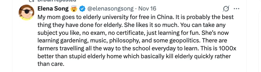 It’s brilliant. And probably not hard to find teachers either. Wouldn’t necessarily have to have a phd, just experience and want to do it. Old people are very decent and polite and as you can tell I’ve had good experiences with them.