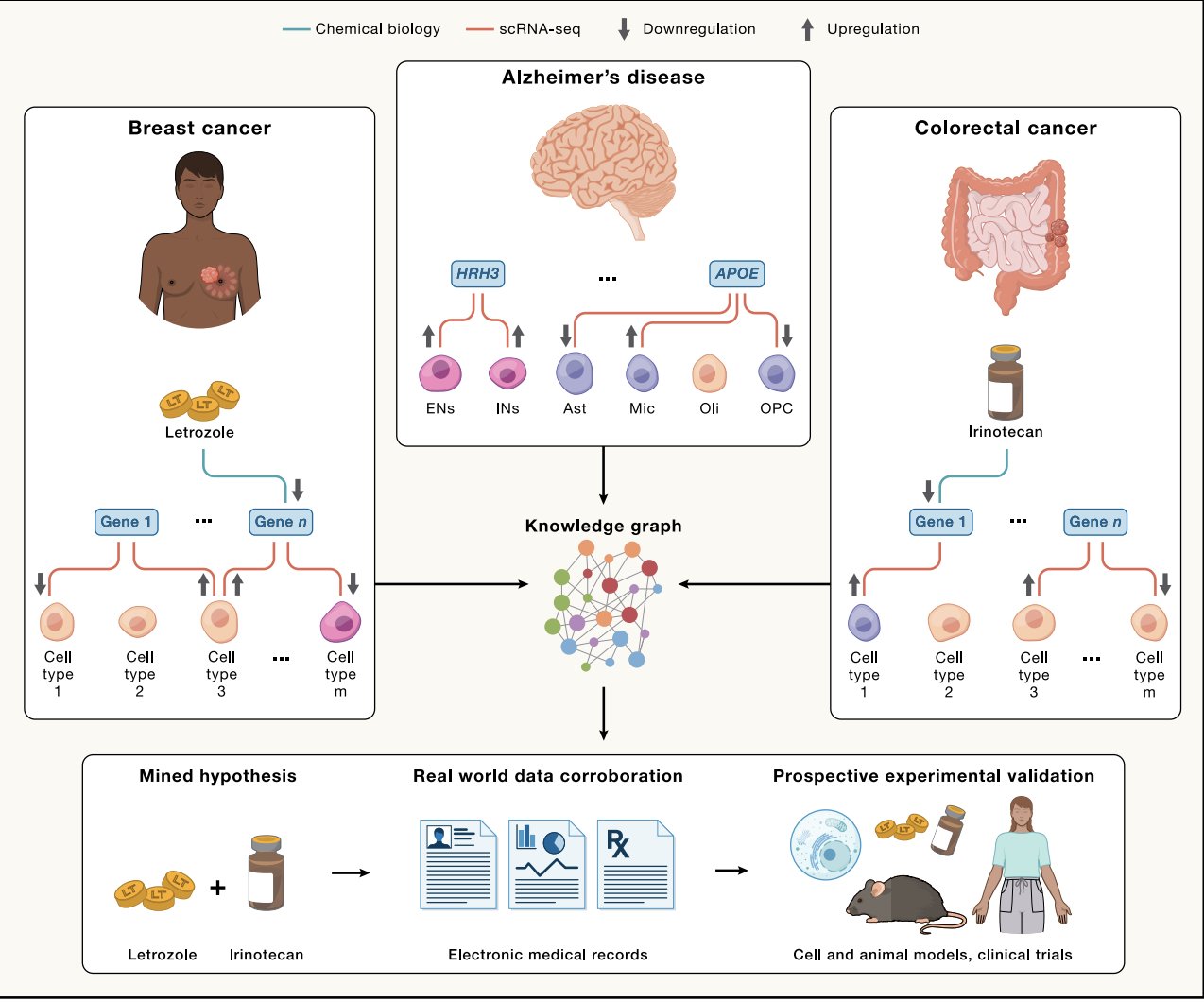 - Researchers built cell-type–specific AD gene-expression “signatures” from single-cell/single-nucleus RNA-seq of human AD brains, then screened drug-perturbation databases (Connectivity Map) to find FDA-approved drugs that reverse these signatures—ideally across multiple brain cell types. Letrozole best countered neuron signatures; irinotecan best countered glial signatures. (Home)