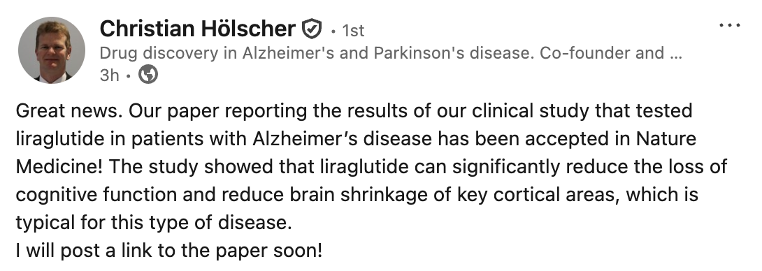 But we absolutely cannot assume that all GLP-1 / incretin drugs will give the same 50% reduction in brain atrophy until their own Alzheimer’s trials report.