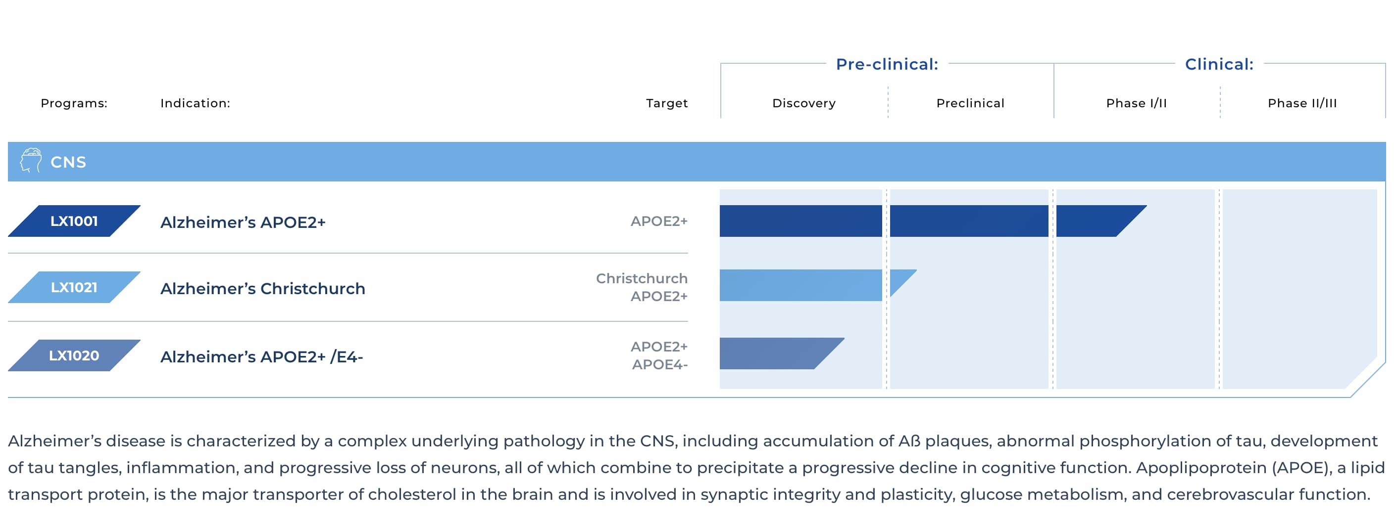 There’s a company called Lexeo working on gene editing to get people to express apoe e2 in their central nervous system. Alzheimer’s - Lexeo Therapeutics