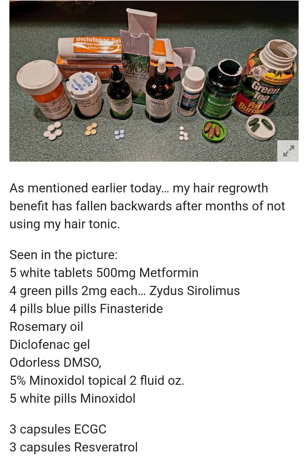 I have read most of your posts on hair. Has your personal hair tonic with Rapamycin worked on your hair? If so what is your final recipe?