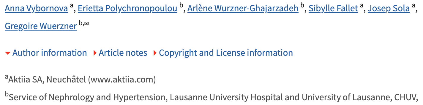 The study was carried out with funding from Aktiia SA, the sponsor of the study.