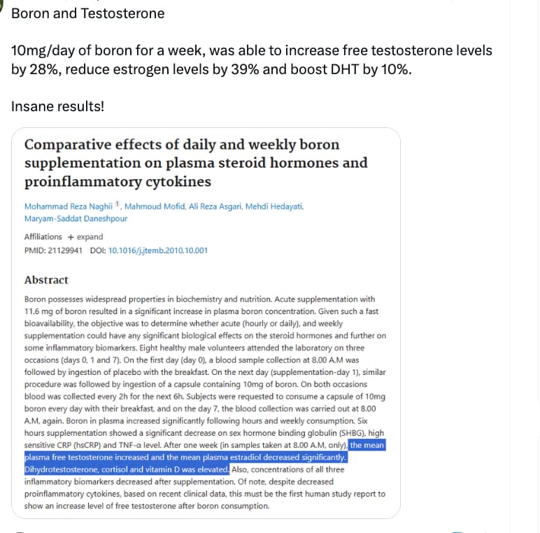 Yes, it’s been well known that Boron lowers SHBG, which helps boost free testosterone. I’ve seen my SHBG go down 10 points on 9mg daily.