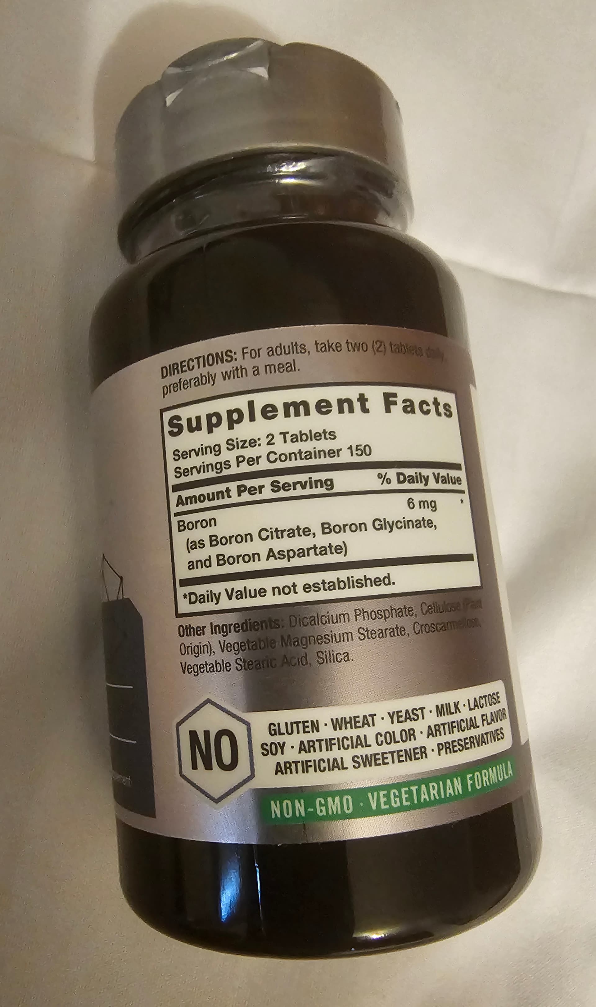 Excellent… I have been taking 4 pills of 3 mg each Boron Complex nightly… 12 mg total for bone health… past 2 years.