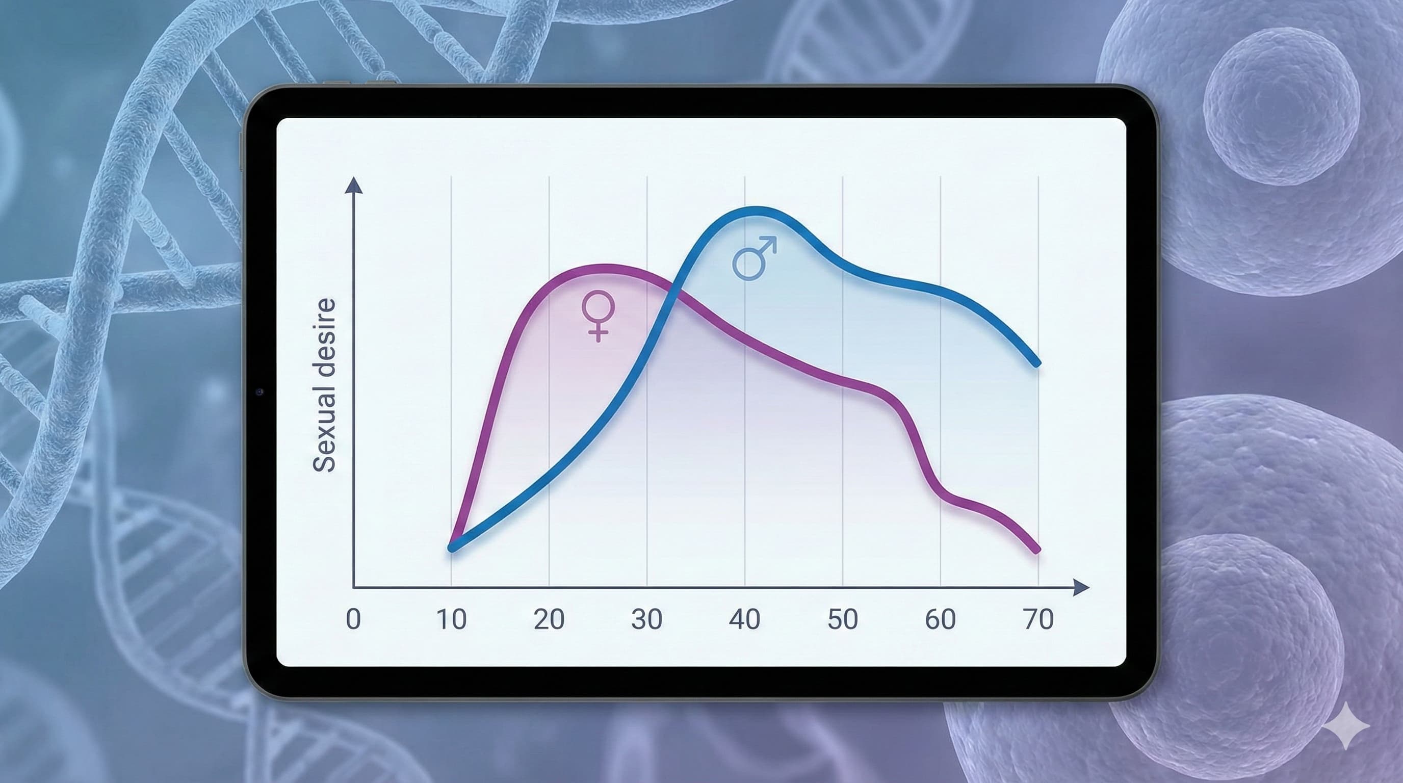 Novelty: The identification of the male mid-life peak (age ~40) contradicts the “Randy Teenager” biological model. It highlights that “desire” is a distinct phenotype from “erectile function” (which typically declines linearly).