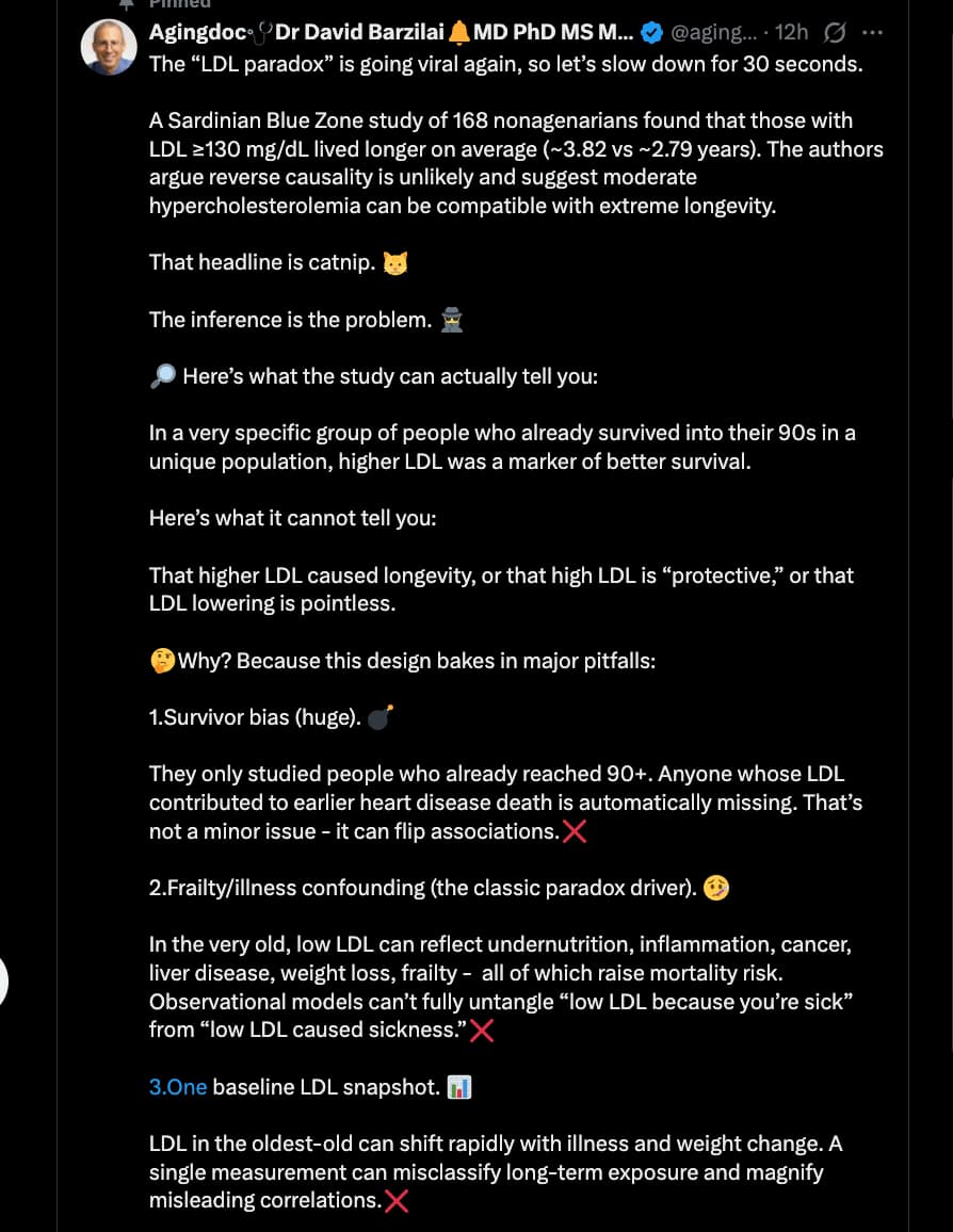 But-- what about the elderly? what about the (can I use the word?) studies that suggest that moderately higher cholesterol is beneficial in old age, and that there is a correlation between moderately high LDL (110-130?) and longer life?