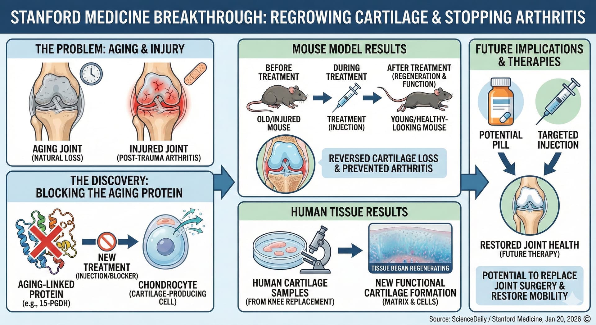 - The Logic: PGE2 is essential for tissue regeneration (muscle stem cell proliferation, mitochondrial function, cartilage repair). As mammals age, 15-PGDH levels rise, PGE2 levels fall, and regenerative capacity declines.