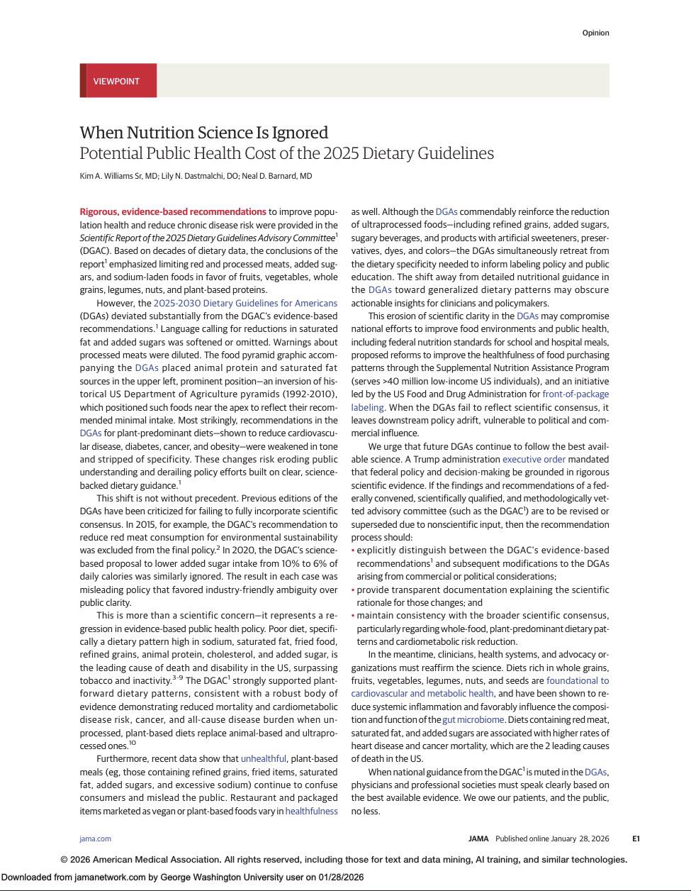 A viewpoint published in JAMA by nutrition experts about the recently released food pyramid. They disagree and reinforce a plant forward diet for cardiovascular health and cancer prevention…