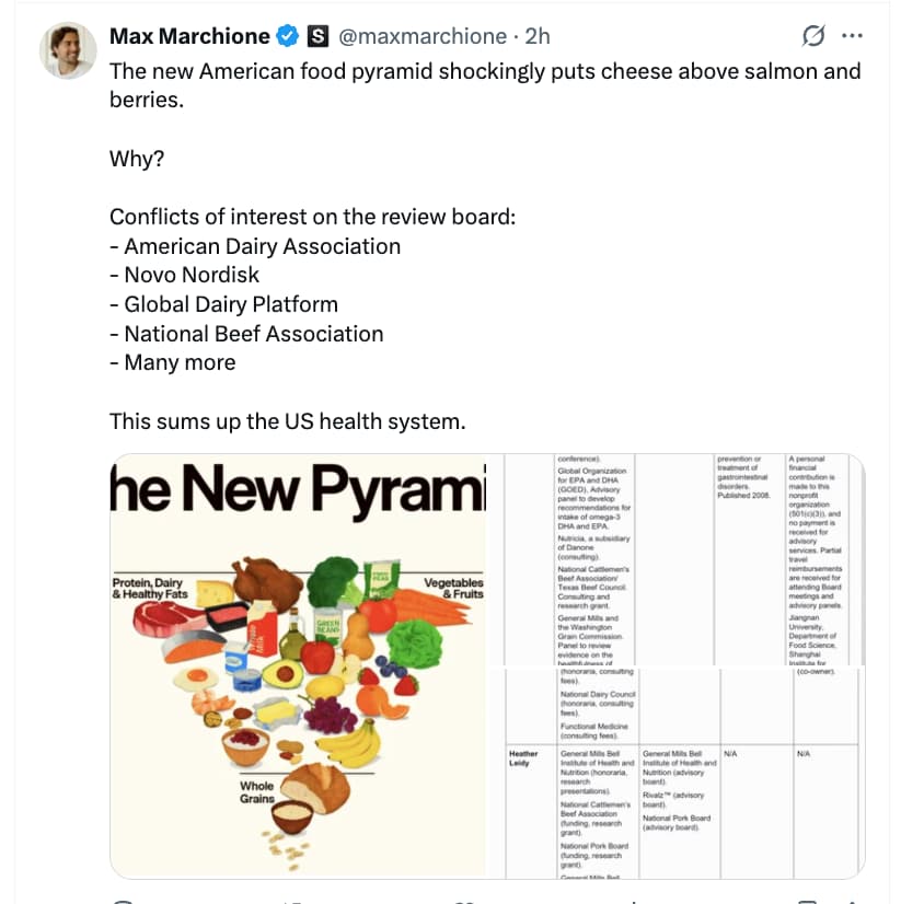 His own panel, he said, would “have no conflicts of interest.” But the new guidelines, which were released Wednesday and emphasize protein, meat, cheese and milk, were informed by a panel of experts with several ties to the meat and dairy industries.