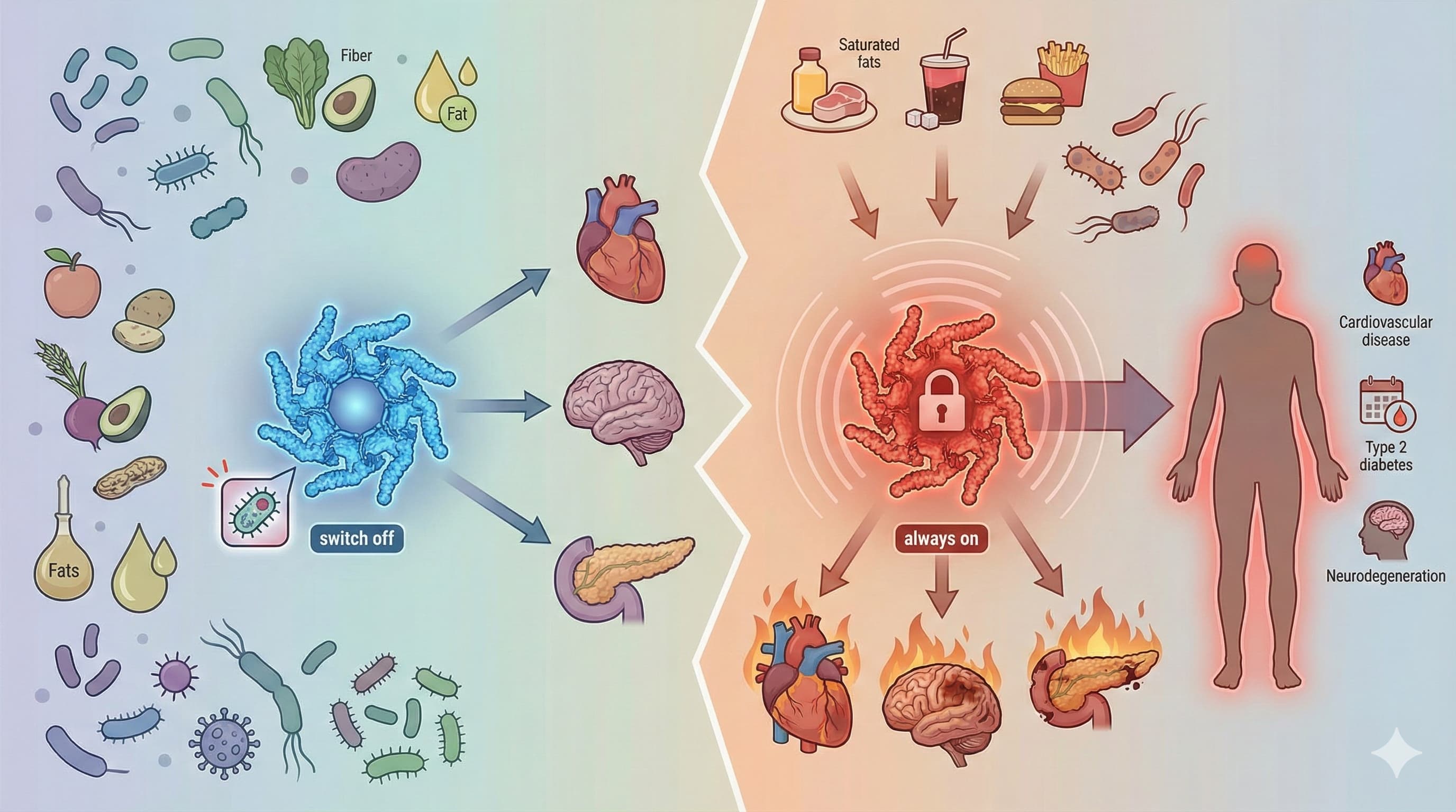 A new review from the Amsterdam UMC in The Netherlands, published in Immuno, frames the NLRP3 inflammasome not merely as an immune sensor, but as the central metabolic “pilot light” of chronic inflammation and aging. While the inflammasome is critical for defense against pathogens, this paper argues that modern dietary inputs—specifically the interplay between lipid saturation, sugar metabolism, and gut dysbiosis—keep this switch permanently flipped to “on” in metabolically compromised individuals. This chronic hyperactivation drives the low-grade systemic inflammation (inflammaging) that underpins cardiovascular disease, type 2 diabetes, and neurodegeneration.