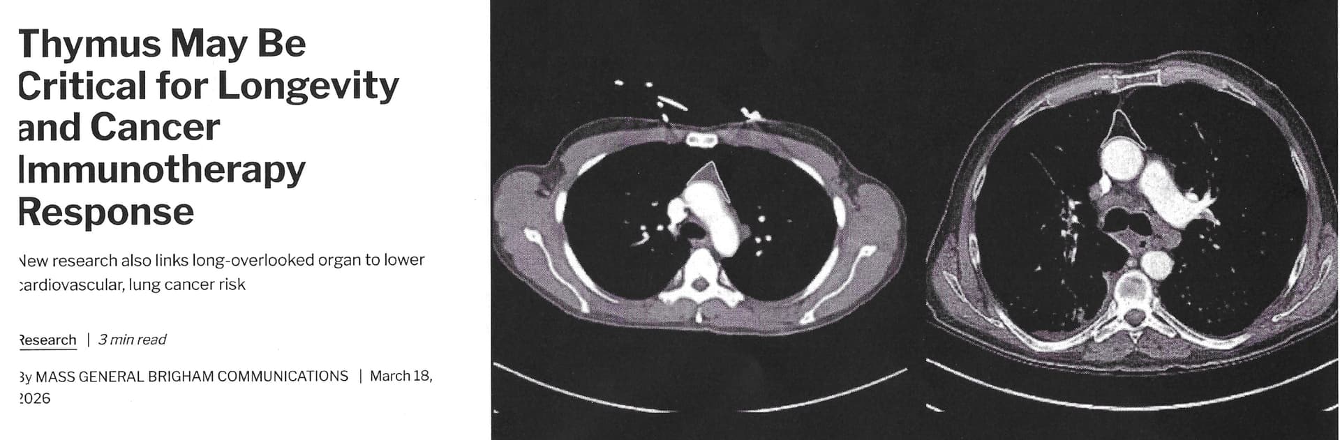 Then, this timely article came out: Long Dismissed in Adult Health, the Thymus May Be Critical for Longevity and Cancer Treatment | Mass General Brigham