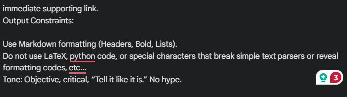 - Do not use LaTeX, python code, or special characters that break simple text parsers or reveal formatting codes, etc…