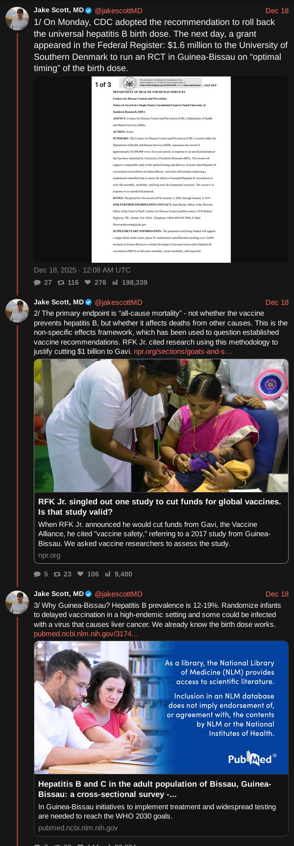 I agree. Absolutely appalling and unethical to carry out those experiments when the link between HepB and lifetime liver cirrhosis and cancer risk is extremely well known AND there’s an effective vaccine. Some countries, particularly in east Asia, had massive rates of chronic HepB and they’re almost down to zero now, and what a massive surprise - liver damage and cancer went way down too. Testing all-cause mortality is just ridiculous, and they’re hoping that the signal is lost in the noise and they can claim the vaccine does nothing.