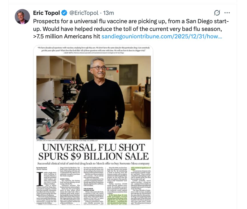 This is amazing news, if it gets fda approval . It seems like it’s not a traditional vaccine, it’s an antiviral drug that works against every flu mutation, by blocking and essential protein in replication.