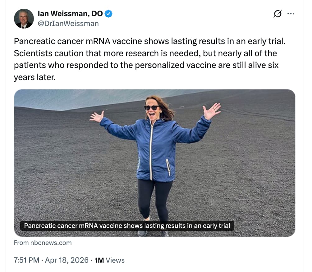 This is amazing news. More proof that we need more research and funding for these mrna vaccines.